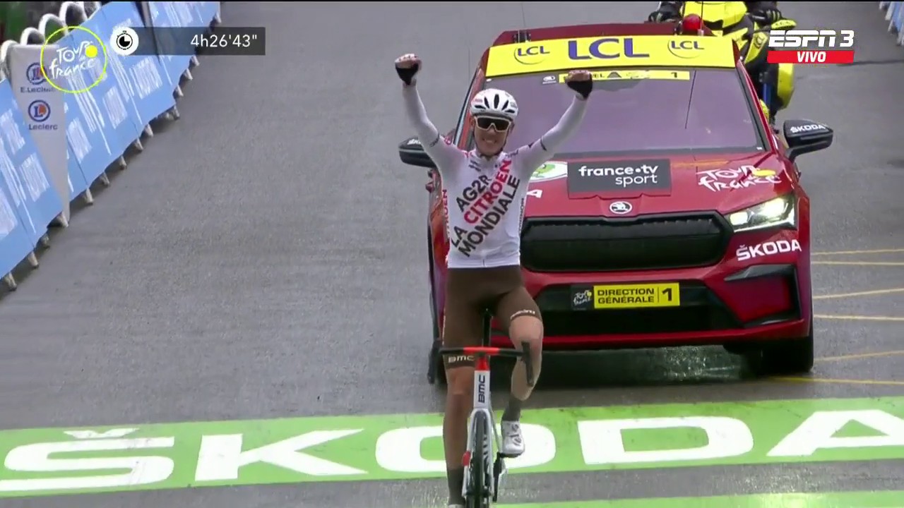 The ag2r citroen rider conquered the bruising mountainous finish in tignes and is second behind defending champion tadej pogacar in the overall.
